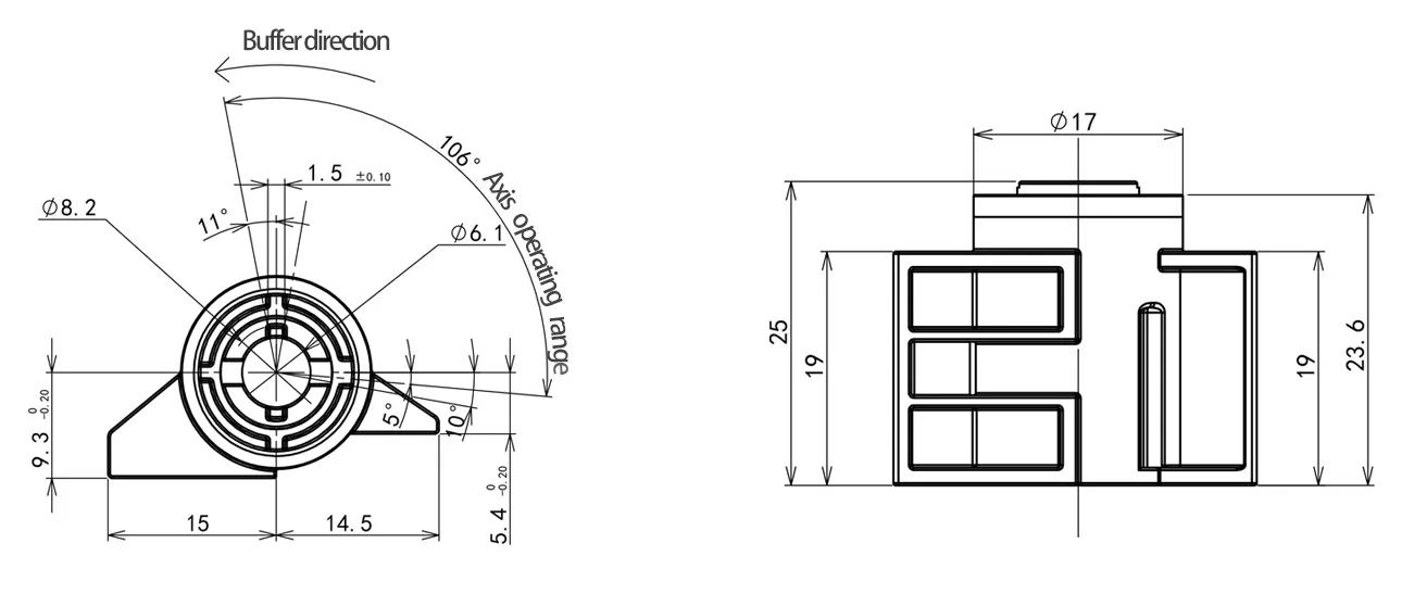 In automotive applications, axis damper is mainly used for automotive door handles, pull handles, rear seats, eyeglass cases, etc. It can also be used for appliance covers and hidden sockets.