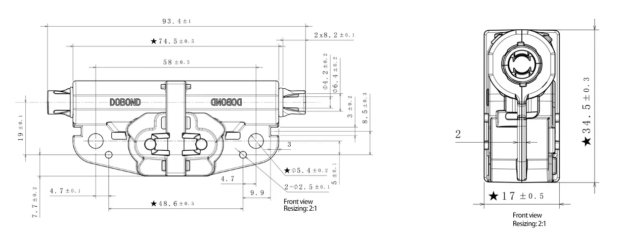 Initial total length: 93.4mm, Limit length: 115mm |
